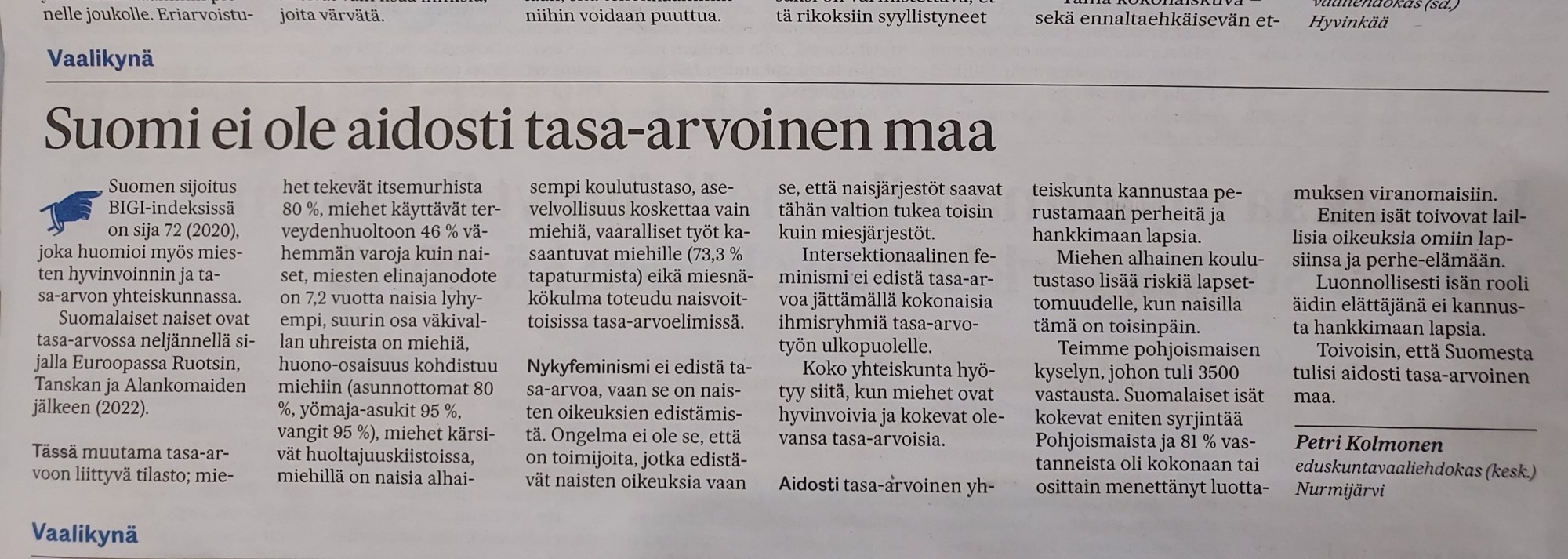 Julkaistu Keski-Uusimaa lehdessä 22.2.2023